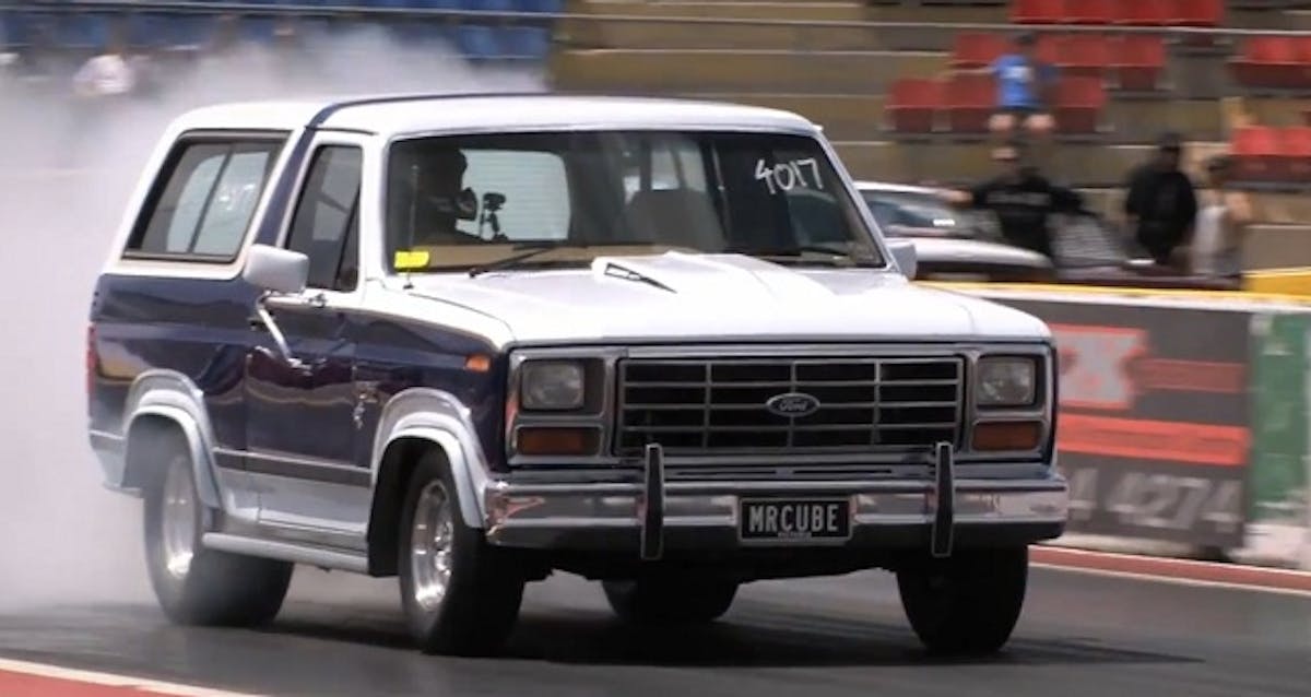 And now from the Land Down Under comes a squirrely, RHD, 80’s vintage full-size Bronco doing ¼-miles in the 10’s! Brought to us by Jalopnik, this wheelie poppin’ Bronco was recently showing off at The Calder Park Drags in Melbourne, Australia. Dyno’d at 855HP, Westernlink Automotive’s project SUV is running a stroked, bottle-fed 427 W Cobra motor that pulls hard to the right. Keeping this thing in a straight line was a handful and if you’re running against this beast, you’ll want to be on left side of strip.