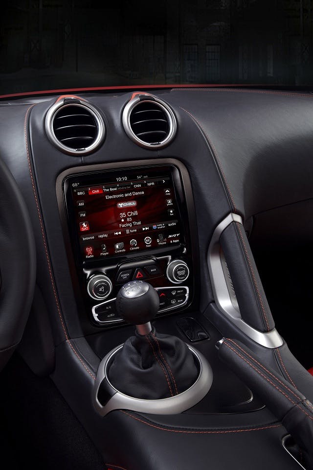 Drivers will spend most of their time inside the Viper, rather than admiring the outside. And inside, Chrysler has crafted an upscale interior with all sorts of premium materials. Extra padding has been added for increased comfort, and every surface is covered in leather.