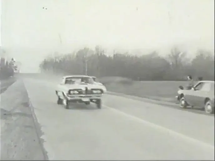 One of his races from 1979 was captured on video: a hopped up Camaro came to challenge the infamous Cougar. They headed to an empty strip of back country road so they could race. Scharschmidt arrived at the scene in his Cougar with street tires, but he swapped them for a set of slicks.