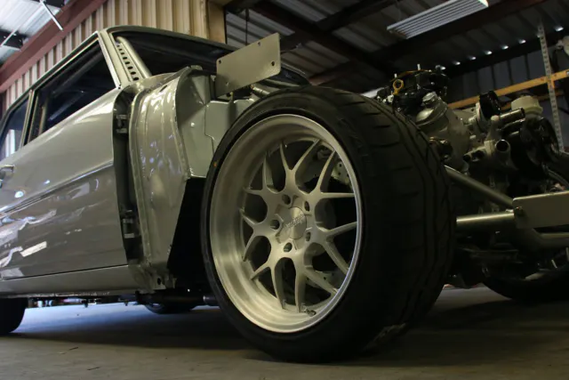 The awesome second-generation Chevy II Nova is powered by carbureted 427 cubic-inch LS engine from BluePrint Engines. Advertised with an output of 625-horsepower and 550 lb-ft of torque, the modern powerplant provides plenty of grunt for the combination to hustle through the straights. The custom fabricated exhaust still incorporates mufflers for some refinement while still flowing enough to make good power.