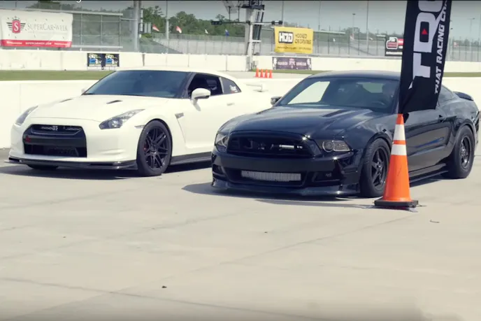 A 980-horsepower 2014 Ford Mustang with two turbos under the hood battles a couple of the fastest cars at the event – including a famous 811 all-wheel horsepower Mitsubishi Evo X, a Nissan GT-R pushing just under 800 to the wheels, and a 1,000-horsepower Mitsubishi 3000GT VR-4 that happened to completely take over the video’s comment section.