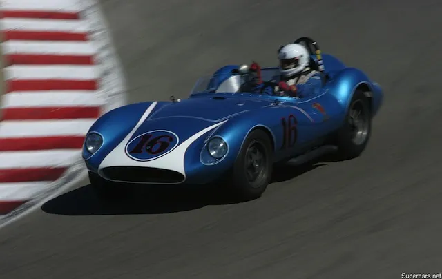 Using Ford supports in the front with custom wishbones and Munroe shocks, the original Mk. I was a car built to Ferrari and Jaguar, road-racing standards, but with the heart and soul of American muscle. The rear end of the Scarab Mk. I was a “de Dion” configuration, the same kind of rear setup used by factory Ferrari Testa Rossas of the time.