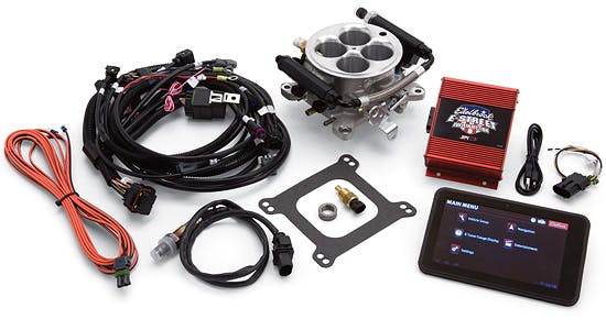 Also, Edelbrock has a cool throttle body E-Street EFI System that’s set up and tuned via Bluetooth with an included 7″ Android tablet. The full featured software is simple for novice users, but is also capable of complete control of all parameters for experienced EFI tuners as well as controlling electric cooling fans and A/C relays.
