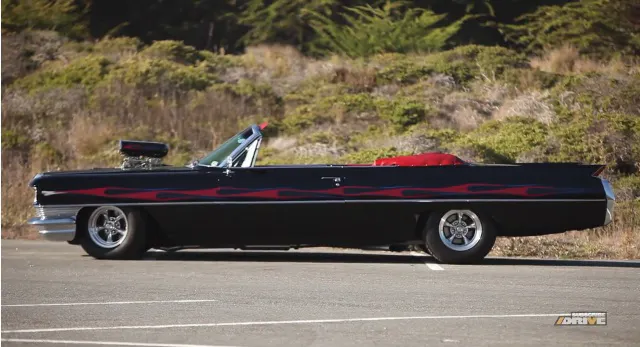 Attached to a 468ci big block, this blower helps shoot Dean’s 4,600lb Cadillac down the street to the tune of nearly 650hp. Aided only by new shocks in the front and an airbag suspension system in the rear, this car is as muscular as non-traditional gets.