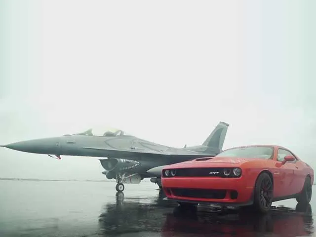 If you think about it, the Dodge Challenger Hellcat is the Fighter Jet of the roadways. It’s ear piercing loud, it has Hellish styling and it spits out more power than anything else. This is why /DRIVE and Road & Track Magazine thought it would be fun to drag race the Hellcat against America’s front line fighter; the F-16 Falcon (better known by it’s pilots as the Viper).