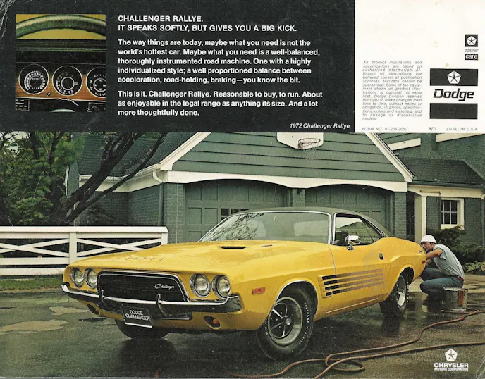 By 1972, the engines that made Challengers serious contenders on the streets of America were for the most part no longer available. The A-block was now the big block, and 383s, 440s and the fantastic 426 HEMI were long gone.
