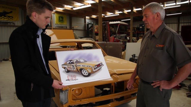 Sold by Todd Motors, the Chrysler distributor in New Zealand, the Valiant Charger was an instant success, not only is sales, but on the track as well. From 1971 to 1979, Valiant racecars ran virtually undefeated at the Benson and Hedges 500 mile race at Pukekohe Park Raceway. From this and other New Zealand circuit races, racing greats like Jim Little and Leo Leonard came to be famous. McGurk catches up with both racing legends in the video and even gets a barn tour of sorts by Little.
