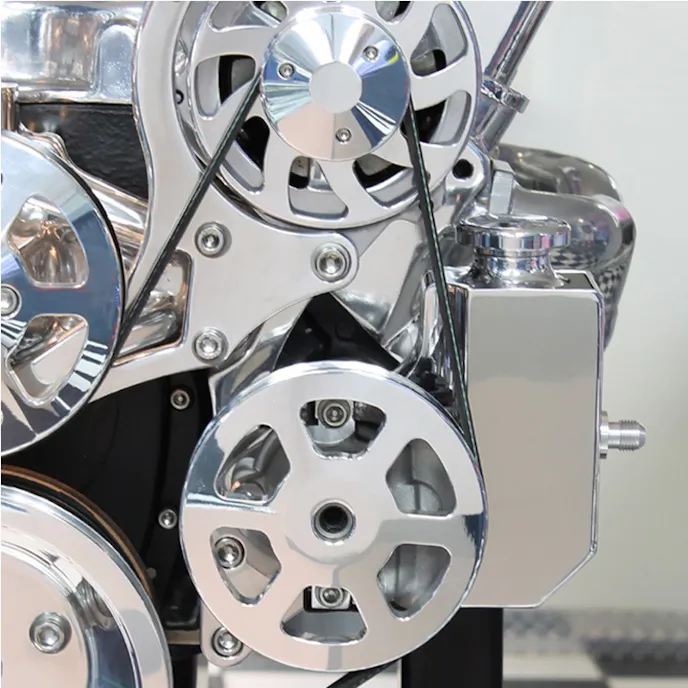 When it comes to dressing up an engine, one area that is often overlooked – for understandable reasons – is the front drive system. Often times, a fresh coat of paint is simpler a task than finding a new set of pulleys and drive belts. There are often so many variations that it’s almost best to stick with what you have and move forward.