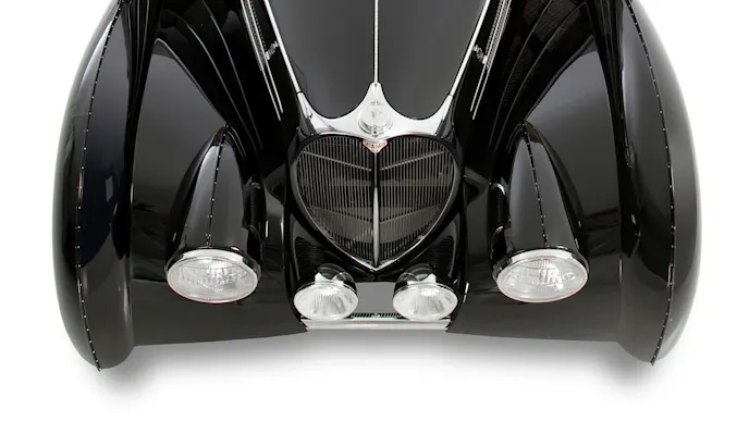 Terry Cook, Owner of Delhaye USA and creator of the Pacific tips his hat to the European coach builders in many ways, the most evident are his renditions and personal takes on some of the world’s most historic luxury lines such as Bugatti, Auburn, and Delahaye. “Make no mistake, I’m just copying and tweaking cars that other people designed decades ago. But I’m picking the best looking cars in history and paying strict homage to those great car designers. I love what I do,” says Cook.