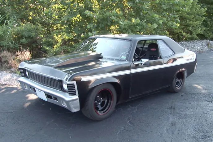 “It’s all legal,” he told us. “I live in a small town and one day I saw this guy driving a truck frame with a seat on it to a car show, and he had a license plate on the frame. So I figured if he could get his frame registered I could get my Nova registered.”