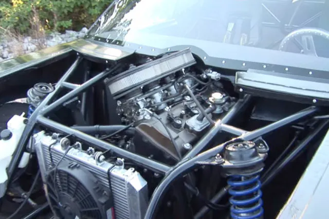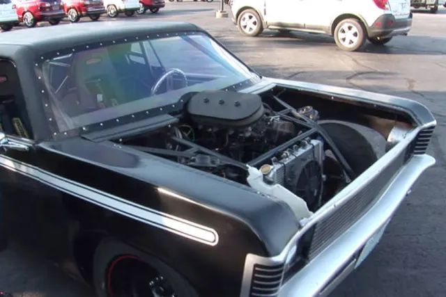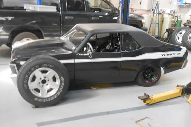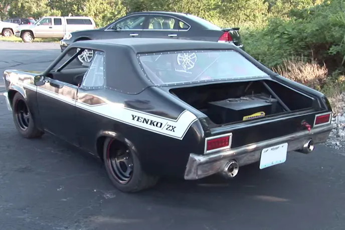 The build took about two years, and Darrell did it all by hand. He built the tube frame, picked up a Ninja motorcycle engine off Craigslist, and laid all the fiberglass to match Ronnie Pace’s Nova – right down to the vinyl top and Yenko stripe. “The front bumper and grille is all fiberglass and foam,” Darrell said.