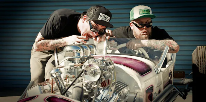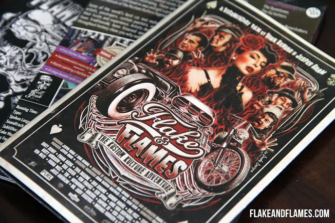 The documentary Flake & Flames was the result of a year long adventure spanning from California to key places in Europe. During this international trek Dirk Behlau and Jesper Bram documented the lifestyle and sub-cultures that comprise Kustom Kulture. From musicians, pinup models, fabricators, and artists ranging from tattooers to pinstripers Flake & Flames is an inclusive look at all avenues that lead to the heart of what defines such a collective culture.