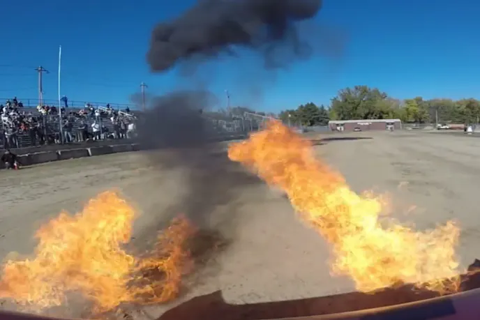 Check out the video above for some of the action. Warning, there is explicit language in this video. Tinman II Kustoms put together this compilation of flame throwing action and also added in the chats he had with car owners about their cars and mods done to them. Featuring some pretty unique ways to pipe the flames out, each car was set up a bit differently. One car, a 1963 Oldsmobile Cutless runs an all aluminum 215 cubic-inch V8. The tricked part about that hot rod is the hydraulic exhaust tips to kick his flames further away from his patina’d paint job.