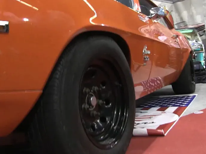 The HotRoad host interviews Corinne Cozette Mansard, President of the club, and while we don’t speak French – we absolutely speak the language of Muscle Cars. VACF has a Hugger Orange 1969 Camaro SS on display at their booth that seems as nice as any other 1st Gen you might come across on cruise night in the US. It’s powered by a 350 small block Chevy, topped with Edelbrock Aluminum heads, an Edelbrock RPM Air-Gap intake manifold. You’ll also observe the Proform air cleaner, fabricated aluminum valve covers, MSD 6AL ignition, MSD plug wires, along with a set of long-tubes and a Flowmaster exhaust.
