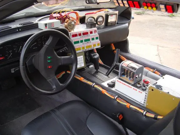 This particular car was built by Bob’s Prop Shop in Dallas, Texas and started out life as an ’81 DMC-12 with the standard stainless steel exterior, black interior, and automatic transmission. While the move cars had gray interior and were portrayed as manual transmission cars, we’ll forgive Bob for these oversights due to the outstanding qualify of the replica itself.