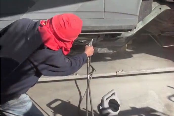 Another terrific episode was part 5, where the underbody received its due attention. While mounted to a rotisserie, the surface rust met its match as Jeff grabbed a Pacific Hydrostar 4HP gas pressure washer, added a Central Pneumatic portable abrasive blaster kit, and used medium grade Armex soda blast media to terminate the oxidized metal flakes with extreme prejudice.