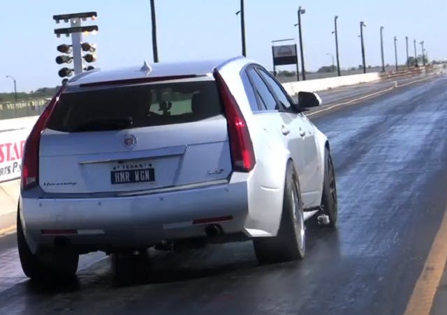 If you had all the money in the world, what would you drive every day? What if you had a family and a long list of chores and errands to run? Well that pretty much rules out Ferrari, Corvette, and most other performance coupes. But then again, we live in a time where sport wagons are increasingly popular, perhaps none as popular (or as fast) as the Cadillac CTS Wagon. And with a 556 horsepower V-version available, this is one wagon that won’t leave you wanting for more power.Unless you’re John Hennessey, that is. The scion of Hennessey Performance Engineering drives a Cadillac CTS-V wagon every day. But this isn’t just any wagon, as thanks to the HPE team it is fully capable of running a sub-11 second quarter mile… and still make it to school in time to pick up the kids.