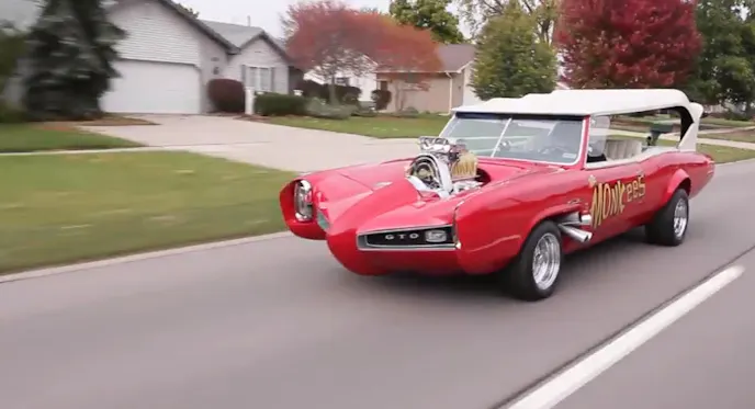 The Monkeemobile was actually two ’66 Pontiac GTOs created by the late Dean Jeffries for a short-lived, highly popular TV series about a fictitious rock band called The Monkees that aired from 1966-1968. Actors Micky Dolenz, Davy Jones, Michael Nesmith and Peter Tork were also musicians, but the TV series didn’t allow much time to create their own music. Still, they managed to write songs and after the show was cancelled, continued recording through ’71, releasing albums and conducting tours for years. At their peak, they outsold the Beatles and the Rolling Stones.