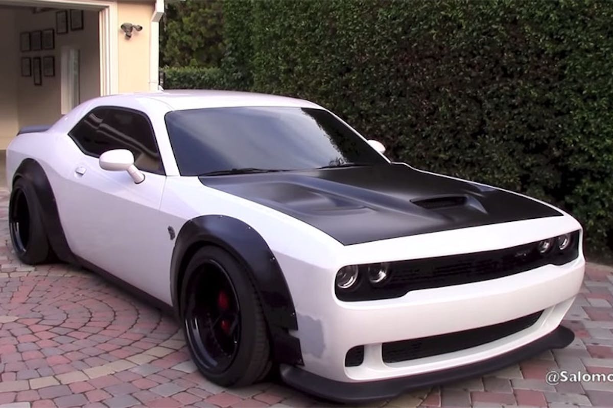 In the clip Salomon is showing off his recently installed (and admittedly explained as a work in progress) Liberty Walk wide-body kit for his Challenger. Salomon spends a bit of time explaining the hidden costs behind doing the modification, including the expense of having the parts shipped in from Japan. He continues to explain that “the pieces will not fit perfectly” and will need to be cut to fit, concluding that your installer is the one that’s going to either make the car look the way you want it to or turn it into a horrible hack job.