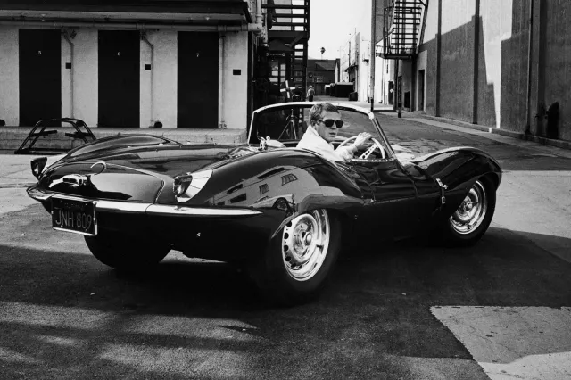 All through the sixties and seventies, McQueen’s image as the King of Cool, combined with his ever-increasing car collection, made him the definitive man’s man of Tinseltown. And one of the most incredible vehicles McQueen ever owned was this vehicle, the ’56 Jaguar XK Super Sport, which McQueen lovingly called “The Green Rat.”