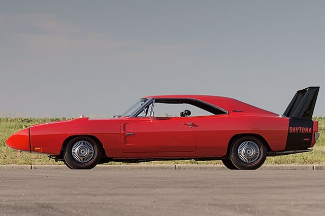 Completing just over 500 Daytonas required by NASCAR for homologation, just 70 of these winged warriors had the 425 HP 426 Hemi. We’re not sure why this car was ordered with the wheel covers instead of the more popular Rallye wheels, but perhaps that’s what makes this Daytona so unique. But is it three-quarters of a million bucks unique? Someone may think so.