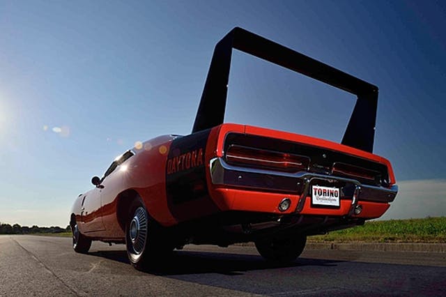 The Daytona was the result of an aggressive program to make the Dodge Charger as slippery as possible. This was achieved by adding the nose cone and an aero wing that helped the Hemi push the Daytona to great speeds. This was designed on the Charger 500, which was Dodge’s first attempt at creating a more slipstream car. Ford responded to the Charger 500s 1968 release by introducing us to the Torino Talladega and Cyclone Spoiler, with the Cyclone taking the win for the Daytona 500 season opener.