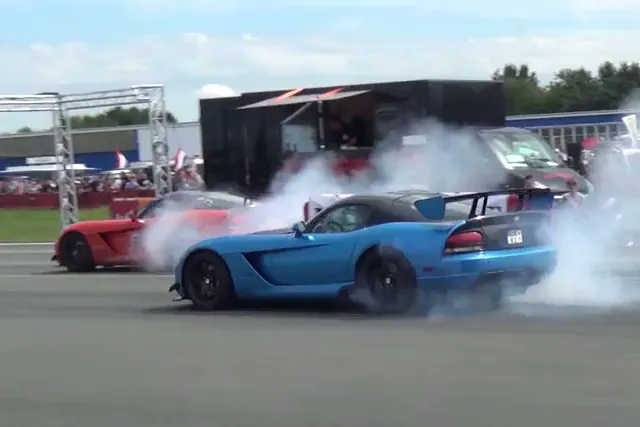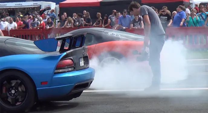 It appears to be some sort of television show along the lines of Pinks All Out, but since we still don’t speak German (nor read it) we were unable to find any more information on the web about what’s going on here. Regardless of what’s actually happening, these dudes are doing some nice burnouts. If you like the sound of an SRT-10 at full song, this video’s for you.