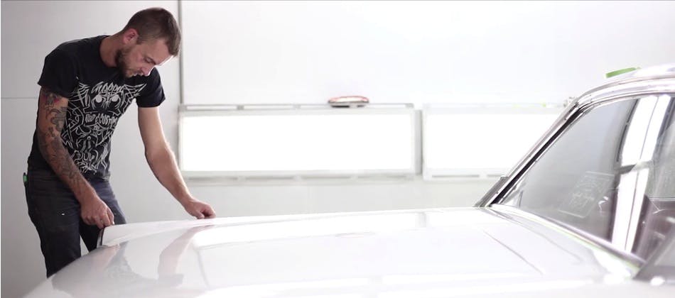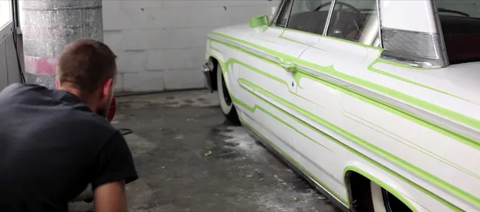 The subject of this short is Ryan Ford of Kustom Linez taping off his Ford Galaxie in preparation for some fresh gold skin.