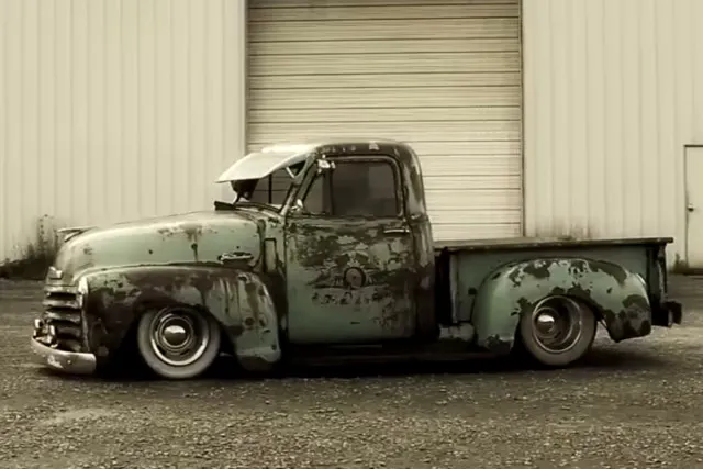 Whether it is real or not, some cars just have the IT factor when they have a patina finish. The video above shows an impressive example of how the patina finish can work oh so well with a modified vehicle. Built by Knuckle Head Garage, this 1948 Chevy pickup was built with an incredible amount of detail. Lightly cleaned emblems and trim pop off the light green paint and rough rust. The very 40s-ish vibe just oozes off the truck. The interior is on the level with a license plate floor board as well as a stained and torn seat cover.