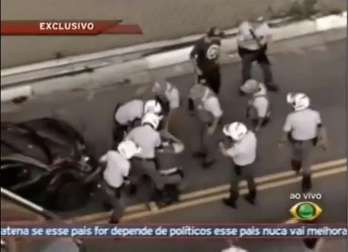 Maybe the best part of the whole video is when the driver of the car in front of him waits for the police to get him out of the car and down on the ground before making an attempt to dish out his own brand of justice for having his car wrecked, on what was likely a leisurely drive home from work. After seeing numerous videos of this type of stuff all over television and the web over the last couple of years, we have yet to figure out what motivates a fellow to attempt to run away, but then again, maybe the statement “you can’t outrun the radio” doesn’t translate too well to Portuguese.