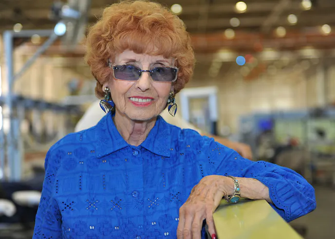 Elinor lives in Long Beach, California and works at the Boeing plant locally. She wakes up every morning at 4:00 a.m. in order to rivet the wing sections of C-17 cargo planes. This is the same job she’s been doing throughout various aircraft assembly plants since 1942!