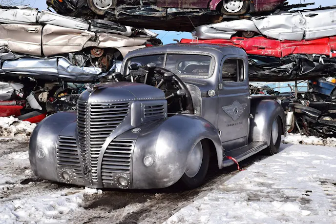 The Plymouth Air Radial Truck, as it is simply called, is a 1939 Plymouth pickup that has had a 12.5 liter (!!) radial engine from an airplane stuffed into the engine bay. It’s a mad piece of machinery, and it runs with the aeronautical theme from front to back.