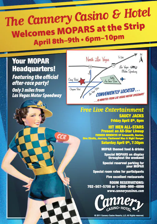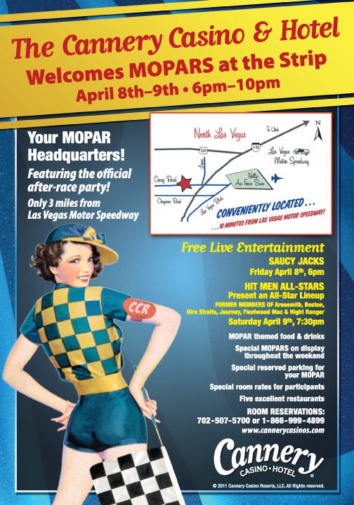 Only three miles from the LVMS, The Cannery has been the hot spot for the annual MATS event. In fact, The Cannery pours so much gusto into sponsoring the Mopar crowd that special Mopar-themed food and drinks were on tap.