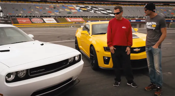 We find it interesting that his favorite choice is the ZL1 – despite the Mustang having more horsepower, the tuned suspension in the Camaro seems to tickle his fancy a bit more. And we also thought it was interesting to note that he immediately felt the heavy weight of the Challenger made it more difficult to drive.