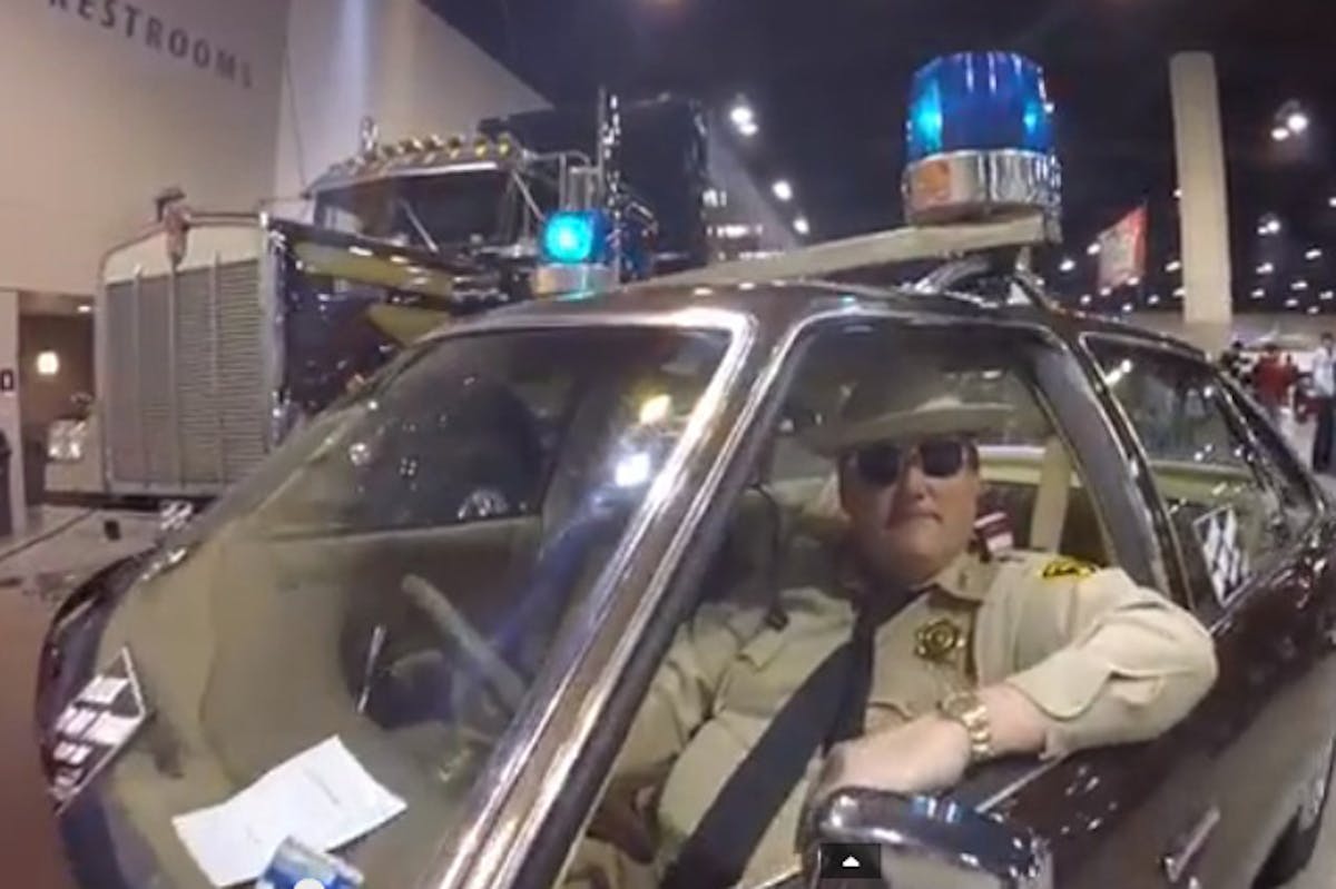 At the Omaha World of Wheels as seen in the video above, there seemed to be a wax figure of Justice sitting in the cruiser, with the big blue lights still spinning. As the cameraman zooms in and out, the still figure is almost a little spooky: is it real or is it a wax figure? After a few seconds, we figure it’s wax. But then something happens, and even the cameraman is startled. Just watch. Did you jump, just a little?