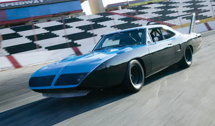 Sticking with the early NASCAR theme, the Superbird was equipped with a full cage and just enough seats for a driver and passenger to sit. Complete with YearOne’s restoration interior panels and reproduction “Tuff” steering wheel, a Flaming River steering column, Auto Meter gauges, and a Painless Wiring harness, the Superbird was set up for some serious competition inside and out.