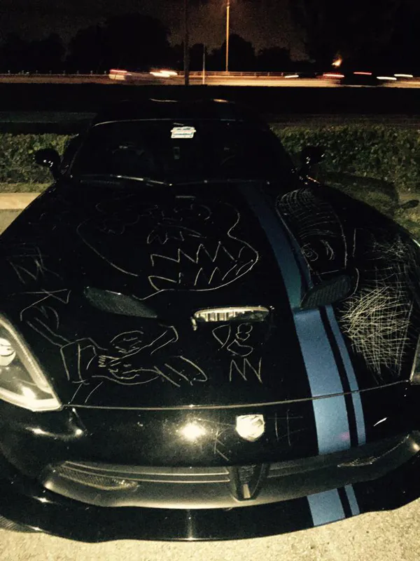 Most of us only have to deal with the occasional door ding or fender scratch when we park our cars at the store, or parking lots in general. But imagine when you come out to see your beloved vehicle covered with unauthorized artwork, like this Viper owner did.