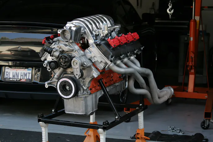 The 9.3:1 compression engine also features a custom Comp Cam Blower Camshaft, Comp Cam springs and retainers, K-1 Technologies H-Beam forged rods and 4340 forged crank, Wiseco custom Reverse Dish forged pistons, ATI damper and Mopar Stage III Injectors.