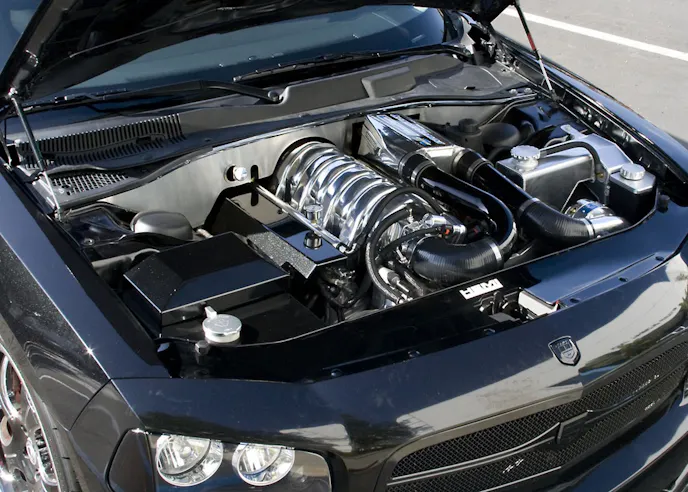 The engine is matted to a Southern Hotrod High Torque Capacity Race Transmission with a ProTorque converter and a Phantom Grip Xtreme Limited Slip differential. The suspension is beefed up with KW Variant II Coilovers and Hotchkis swaybars. To top it off, the Charger is also equipped with an MSD Ignition system, AEM digital AFR and Boost Gauges, Kooks Long Tube headers and a custom Flowmaster exhaust.