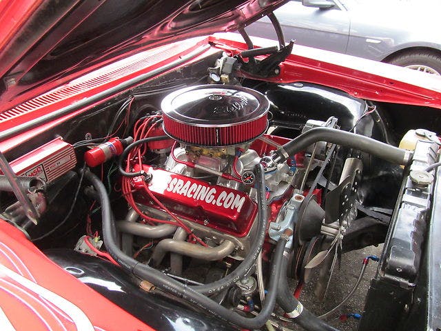 This Impala has definitely got the goodies under the hood, but the part that catches your eye prior to seeing anything under the hood is the “It’s Only Rock and Roll” paint scheme on the outside. With Pink Floyd’s Dark Side of the Moon logo, the famous Rolling Stones lips and a Grateful Dead skull surround a left-handed guitar.