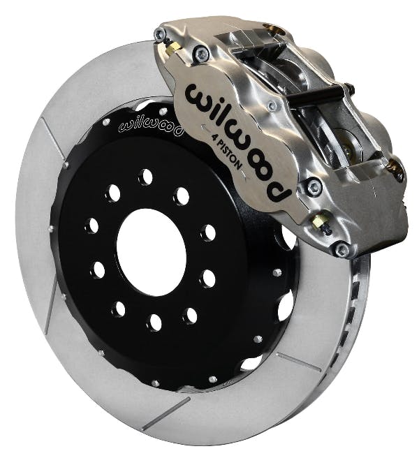 Wilwood Disc Brakes has configured two new front disc brake kits for 1998-2002 Camaros and Firebirds, or 1993-97 cars that have been upgraded with 1998-02 spindles. Four piston forged Superlite 4R/ST nickel finish Quick-Silver calipers, PolyMatrix race pads, and two-piece Spec 37 alloy 13.06” directional vane rotors, are combined in these easy bolt-on kits to meet rules in NASA’s Camaro / Mustang Challenge, American Iron, American Iron Express, and other similar sanctions using 17” or larger wheels. The calipers are volume matched to original equipment power brake system output, and can easily be matched to common master cylinder sizes on manual balance bar pedals.