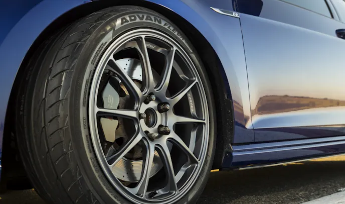 The ADVAN A052 is designed with an asymmetric tread design to provide both a stable surface on the outside edge of the tire (the side that’s most loaded in turns) with circumferential grooves in the middle and on the inside, along with lateral channels, so that you won’t lose your grip on the situation should the skies open up.