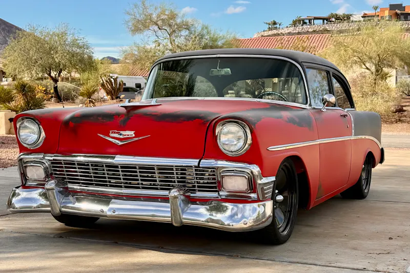The factory dash panel cover was retained, but redone. The nine-gauge cluster was fabricated from aluminum and was precision cut.