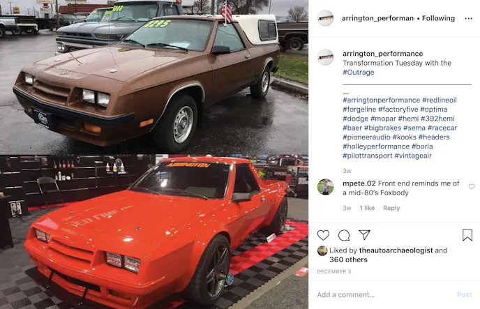 “But, two years ago when I bought Arrington, I made 15 trips to Virginia to move inventory and everything else to Michigan. Well, there was a BBQ place down there that I’d have lunch at. Across the street from the BBQ spot was a closed down auto repair shop. In the parking lot, there was a Dodge Rampage someone had abandoned.”