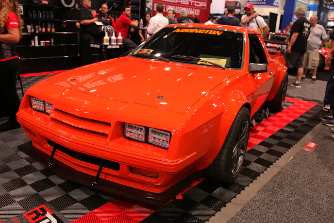 Mike’s Rampage had been transformed from a weak ’80s relic to a totally radical race car! I snapped a few photos during the reveal, but the crowds were such that I couldn’t get anything worth publishing in these digital pages. I knew I’d be back after hours to get the good stuff.