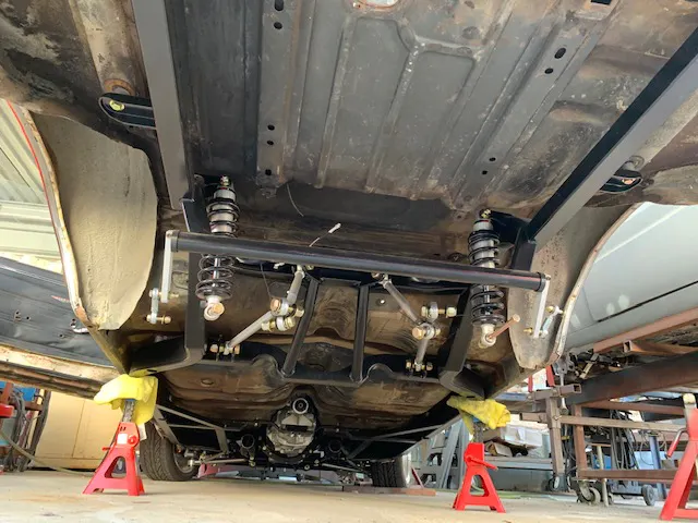 IPT has been hard at work, knowing our intention to make it to the ’24 SEMA Show. Miles to go before we sleep! Thankfully the QA1 driveshaft fit with minimal massaging to the floorboard. In a more dedicated track car, we’d probably want more clearance and maybe even bring the frame closer to the floorboard. However, we felt the compromises made fit the intended use of the car.