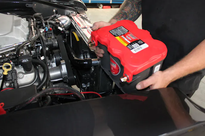 This particular Optima Battery is a red-top with 800 cold cranking amps, plenty of juice to get our LSA turning over and fired up. Upon first start, it fired up without any problems whatsoever, which is the goal for any build or engine swap. As always, once the engine does get fired up, check immediately for any fuel leaks, coolant leaks or oil leaks.