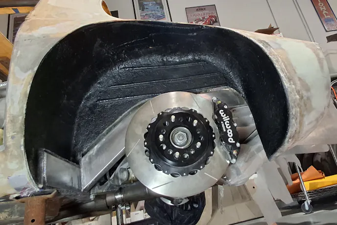 Now there’s ample clearance for the rear tires, with 27-28-inch diameter rubber slated for use. We’ve also upped the rear wheel width to 12-inches to provide additional bite. Wheels are 18-inch diameter “Team III” models from ET that pay homage to the 8-spoke “Minilite” wheels popular on Trans-Am and other vintage race cars.