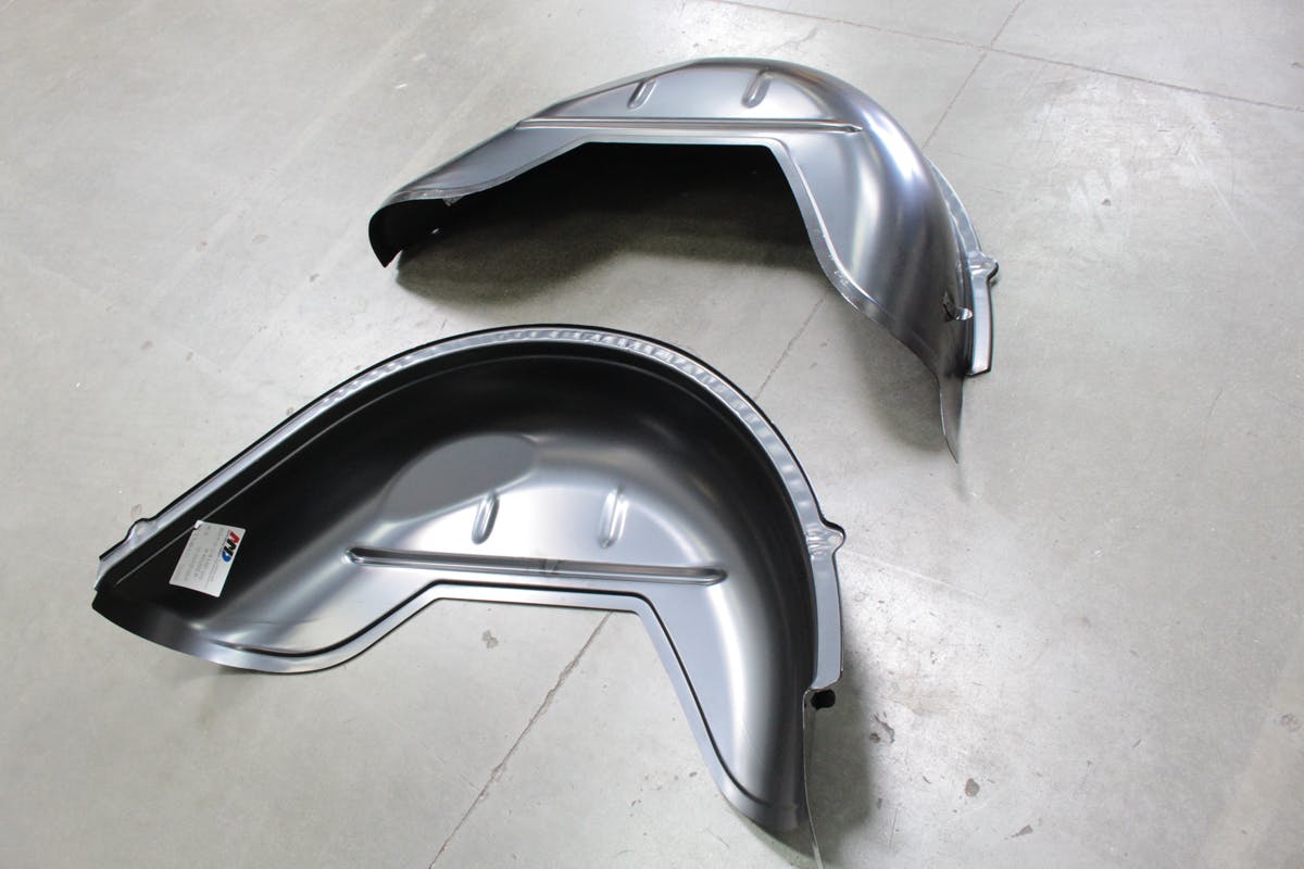 The first thing we needed to do, however, is to call on our friends at Classic Industries and pick up a much needed trunk floor pan to replace our Swiss-cheese pan. One of the main reasons for the pan replacement was because we decided to do some cosmetic surgery on the Plymouth, and make room for a couple of fatties in the back: 315/30R18 tires that we picked up from Falken Tire. That meant a cool mini-tub kit from US Car Tool for the Belvedere, and to clean up the inner wheelhouses, we called on Auto Metal Direct (AMD) for some fresh panels to tie into the upgrade.