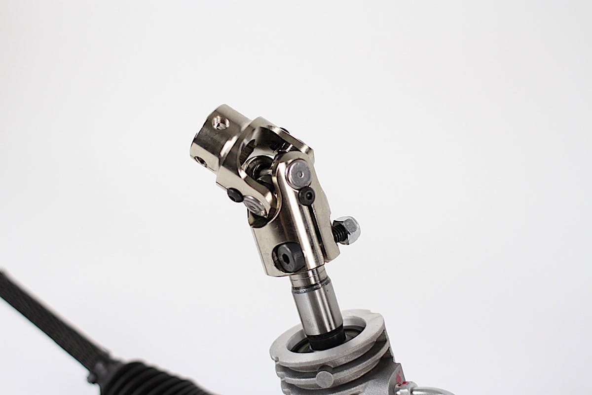 Cutting the shaft to the proper length can be a tricky proposition – if it’s too long it won’t allow the joint to articulate, but if it’s too short then it will not allow the set screws to engage the shaft. “Measure from tip to tip of the shafts,” Jennings suggests. “You want to go from the tip of the column shaft to the tip of the steering gear shaft without overlapping and subtract 3.25 inches.”
